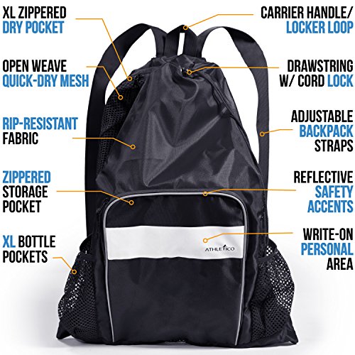 Athletico Mesh Swim Bag – Mesh Pool Bag With Wet & Dry Compartments for Swimming, the Beach, Camping and More