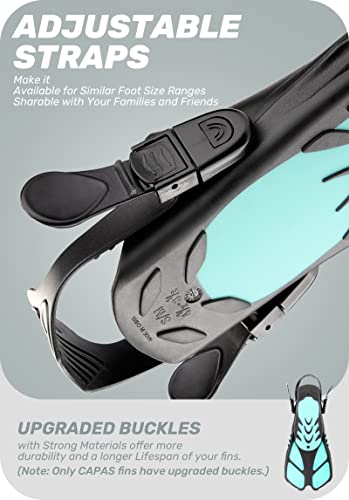 CAPAS Snorkel Fins, Swim Fins Travel Size Short Adjustable for Snorkeling Diving Adult Men Women Kids Open Heel Swimming Flippers