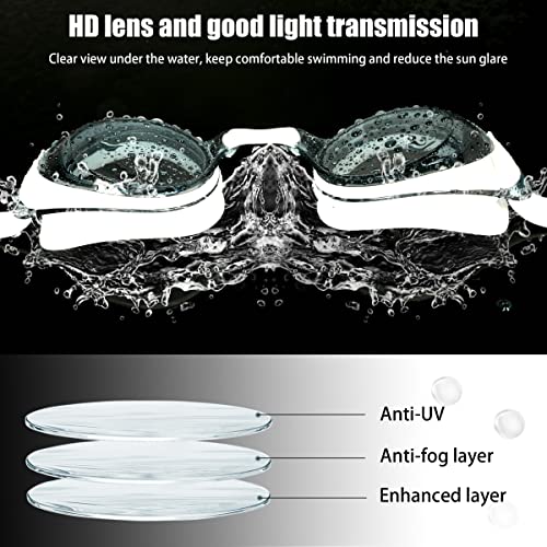 NO FOG: The lenses are coated with the newest advanced anti-fog, which can prevent fogging to the maximum extent, does not hurt the eyes, and can provide you with clear and long-distance vision when swimming. To protect the anti fog coating, please avoid wiping the inner flat lens.