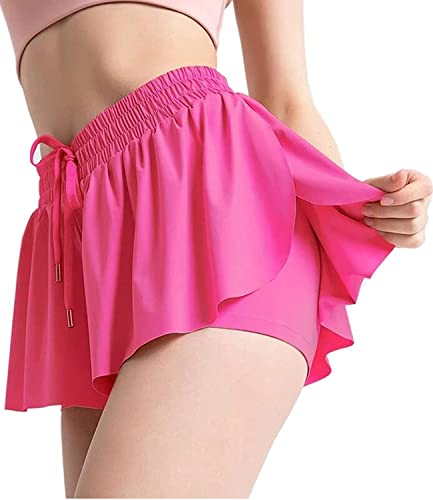 Flowy Shorts, 2 in 1 Butterfly Shorts High Waisted Athletic Shorts for Women Workout Biker Running Yoga Gym Tennis