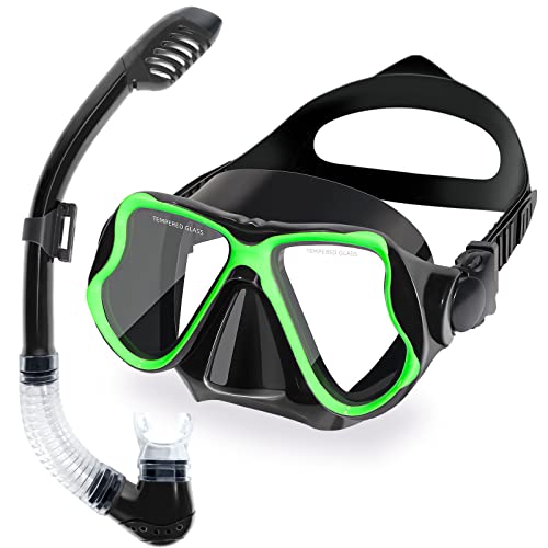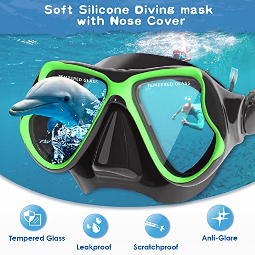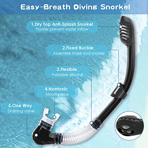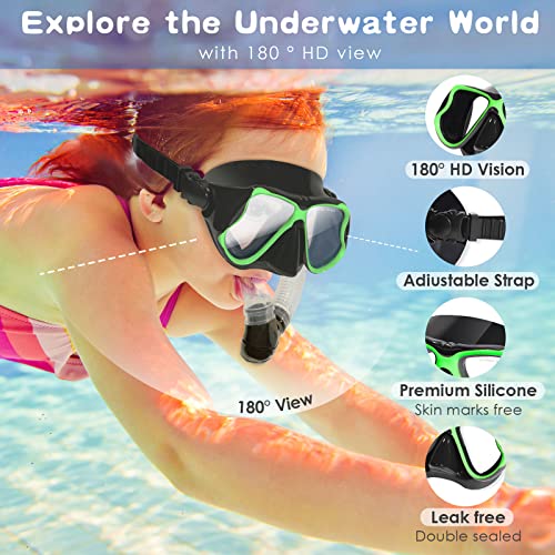 Kids Snorkeling Set, Snorkeling Gear for Kids 5-14 with Dry Top Snorkel and Tempered Glass Swimming Diving Snorkeling Mask, 180°HD View, No Leak