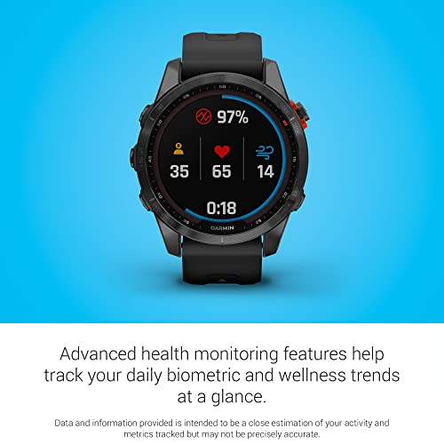 There are 7 days in a week. And the fēnix® 7S Solar multisport GPS watch is built to go strong for all of them. It’s styled for smaller-sized wrists. And its Power Glass™ solar charging lens gives it the battery life to sustain a whole array of athletic and outdoor features. Use trusted button controls or the new touchscreen interface to access selections. Gain performance insights and metrics that help you manage your exertion and build stamina. Optimize recovery with 24/7 health and wellness monitoring of heart rate, respiration, stress, sleep and more (this device is intended to give an estimation of your activity and metrics; it is not a medical device). GPS and outdoor navigation sensors guide your outings off the beaten path. And to complement your tamer days, connected features include smart notifications when connected to a compatible smartphone, music storage and Garmin Pay™ contactless payments in supported countries and payment networks.