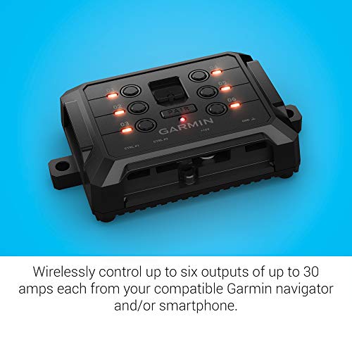 Wirelessly control up to six outputs of up to 30 amps each, from your compatible Garmin navigator or smartphone downloaded with the Garmin PowerSwitch app and paired to the Garmin Power Switch digital switch box
