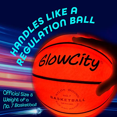 GlowCity Glow in The Dark Basketball for Teen Boy – Glowing Red Basket Ball, Light Up LED Toy for Night Ball Games – Sports Stuff & Gadgets for Kids Age 8 Years Old and Up