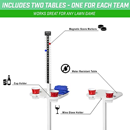GoSports ScoreCaddy Set of 2 Outdoor Scoreboard Tables with Drink Holders – Perfect Score Tracker Accessory for Backyard Cornhole and Yard Games