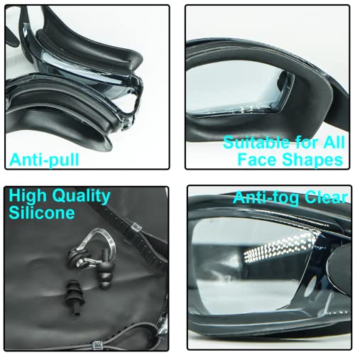 LJNYIE Adult Swim Swimming Goggles Glasses Gear for Womens Mens Youth Goggles Swim with Nose Cover Caps Ear Plugs Anti Fog