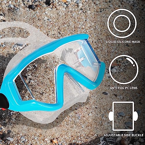【Food Grade Silicone Strap and Skirt】OMGear snorkel goggles are with soft food grade liquid silicone strap and skirt,environmental-friendly and healthy, offering an extreme comfortable using experience. The easy adjustable mask buckles and flexible face skirt, perfectly engineered to fit virtually any face shape and heads in different sizes.Premium silicone dive mask is durable and stretchy,much better than normal PVC swim mask.