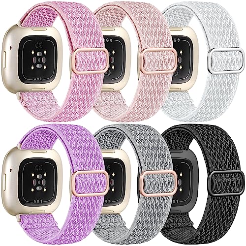 Ouwegaga Compatible with Fitbit Sense 2 Bands for Women/Fitbit Sense Bands/Fitbit Versa 4 3 Bands, Adjustable Stretchy Nylon Solo Loop Sport Strap for Fitbit Sense/Sense 2/Versa 3/Versa 4 Smartwatch