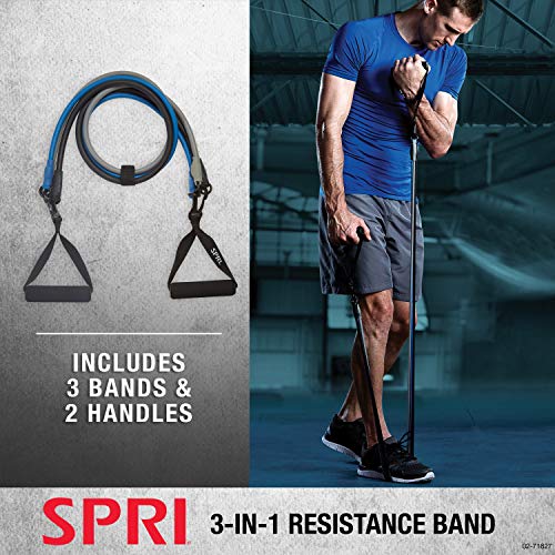 Get Three times the resistance with the SPRI Resistance Band Kit – includes 3 bands in progressive intensities that can be adjusted for your perfect fit. Quickly adjust the exercise band to your desired intensity by easily clipping on or off each resistance band. Includes durable foam covered handles – foam cushion offers greater stability and control while also lessening hand fatigue. downloadable fitness guide is included to help you get started with a few simple exercises.
