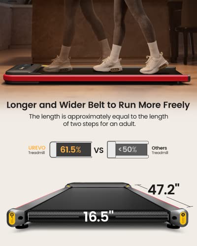 Ultra-light and Portable Design: UREVO under desk treadmill is only 4.2 inches thick and weighs 55lbs. Designed with two front mobile wheels, anyone can move it easily. You can easily store it under the bed, sofa or working desk, which can save your space perfectly. To provide with a better experience, the treadmill doesn’t need to be installed and can be used directly after being disassembled.