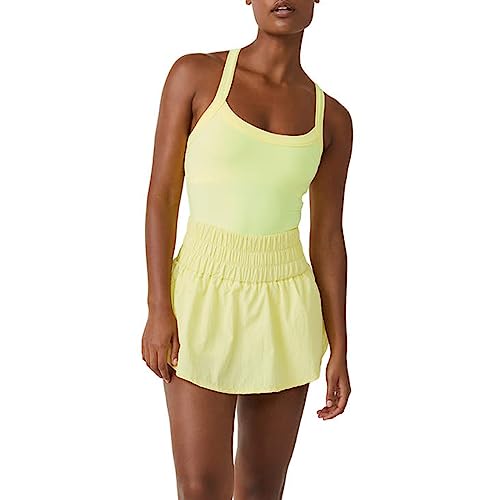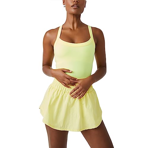 ACTIVE DRESS: Solid color, sleeveless, slim fit, creating a streamlined look, fashion and function complement each other, romper dress with shorts can cover belly, creating a sunny and lively look, fashionable and charming!